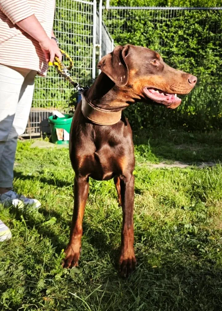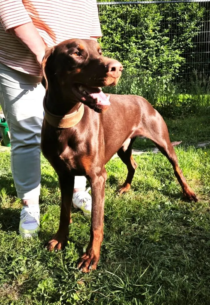 alle sagen, ich bin ein sehr hübscher Kerl. Ich suche mein Für-immer-Zuhause. Auf meiner Pensionsstelle fühle ich mich zwar sehr wohl, hätte aber viel lieber ein eigenes Zuhause und eine eigene Familie. Man sagt, ich habe mich mittlerweile zu einem schönen und stattlichen Rüden entwickelt und ich sei ein kleines Powerpaket. Ich brauche viel Auslastung, sowohl körperlich als auch geistig und noch sehr viel Erziehung. Ich bin halt ein richtiger Dobermann.