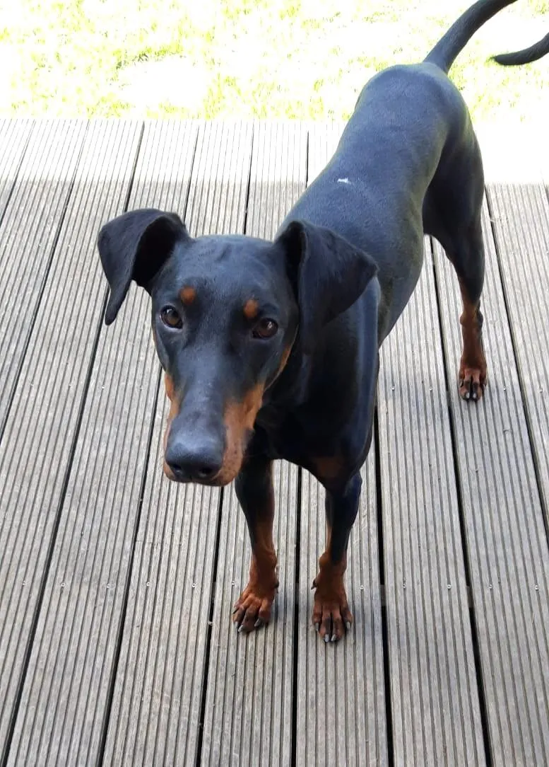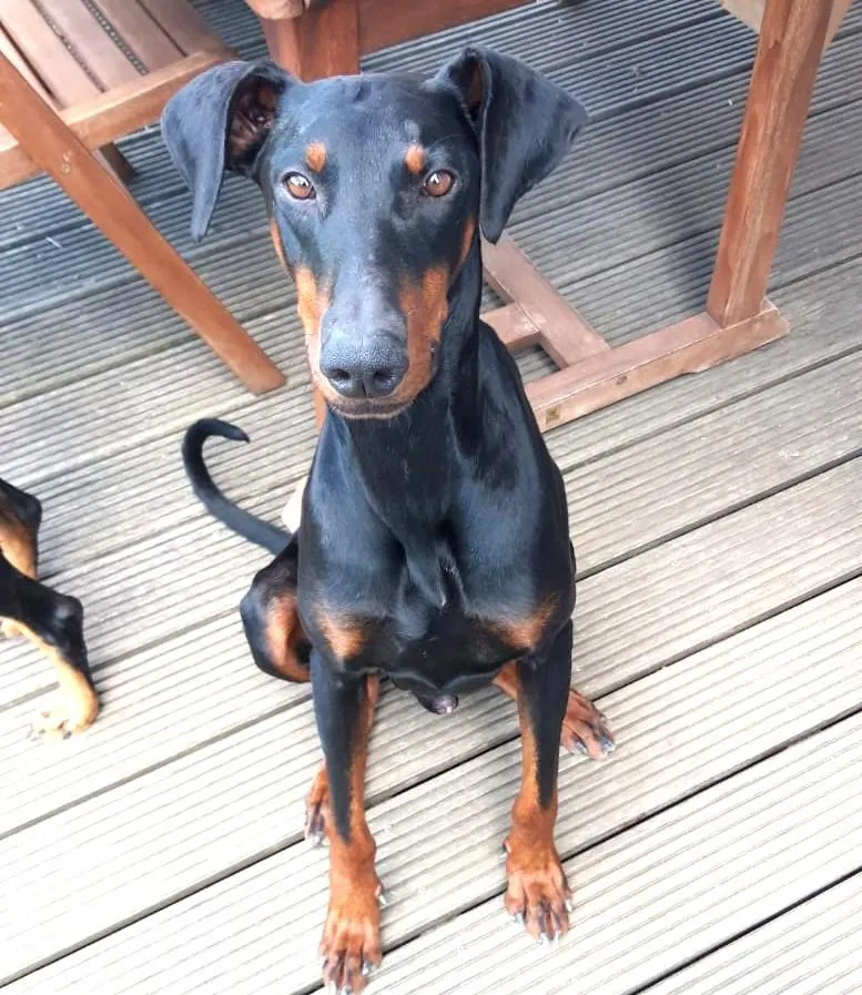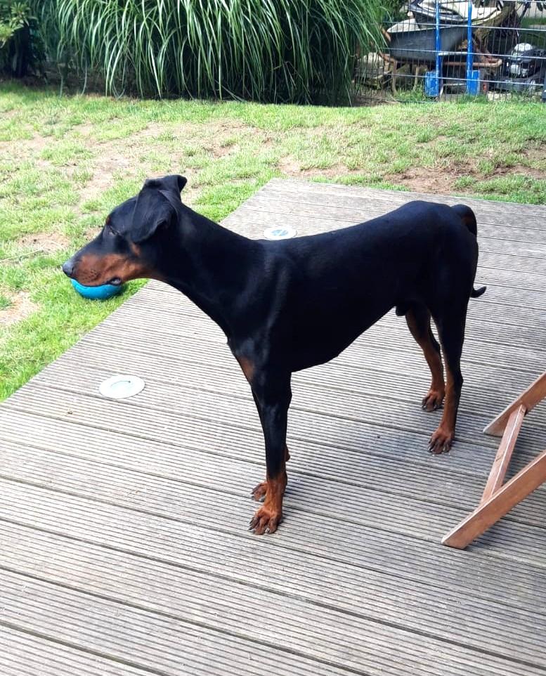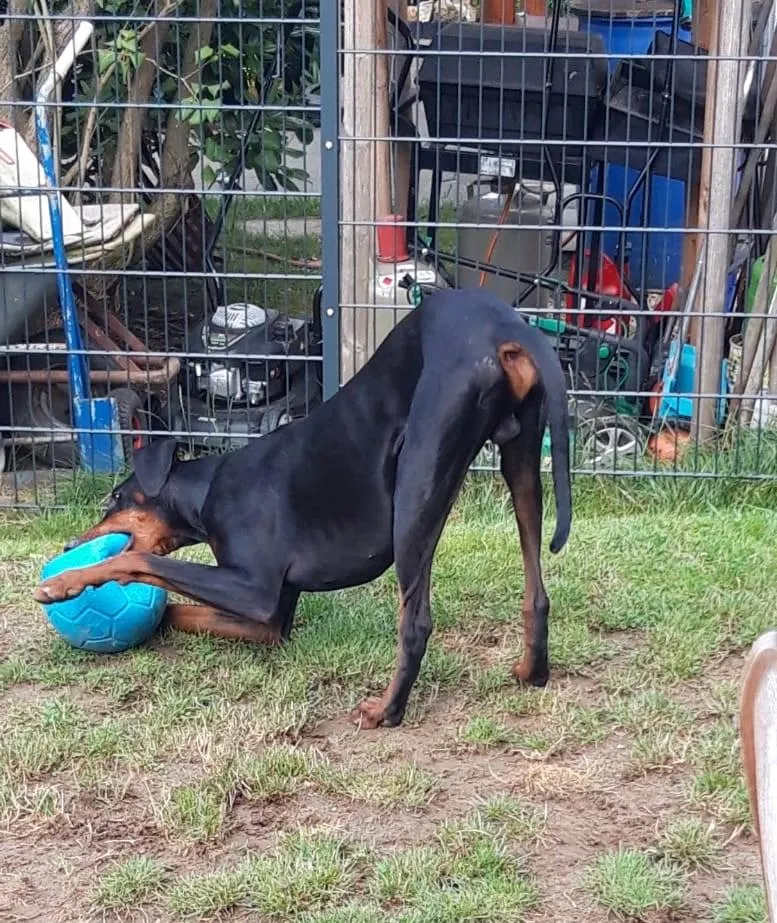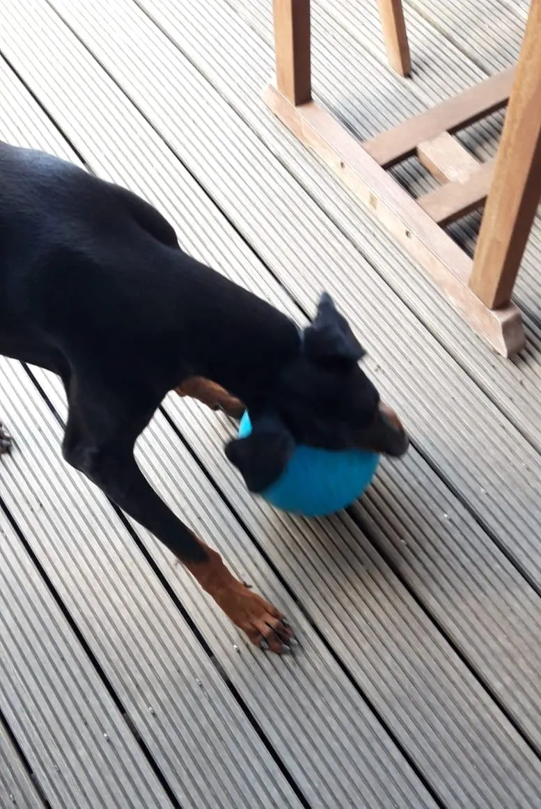 Er ist ein typischer Jung-Dobermann, verspielt, sehr Menschen bezogen und anhänglich, mit sehr viel Energie, die es gilt in die richtigen Bahnen zu lenken.